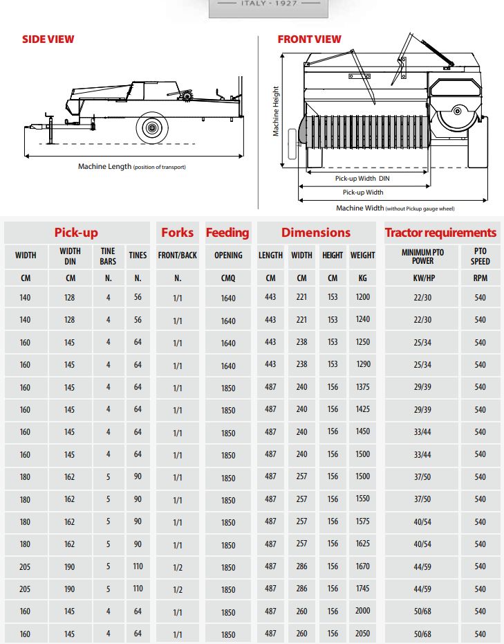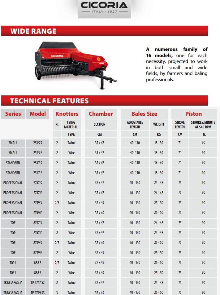Připojení k čtyřkolovým traktorům 22-50kW. Výrobcem je italská firma CICORIA s historií od r. 1927.